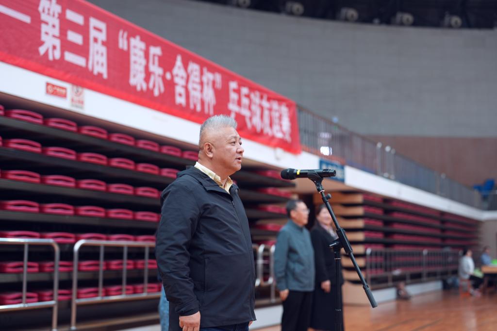 开幕式在庄严的国歌声中拉开了帷幕。姜忠平首先致辞。他指出:“两年一次的乒乓球友谊赛既是乒乓球飞舞的竞技舞台,更是老友重逢的欢乐盛会。我们希望通过这样的平台,进一步丰富老同志们的精神文化生活,让大家在运动中强健体魄,在互动中深化友谊,在欢乐中感受温暖。同时,我们也期待通过老同志们的精彩表现,在全校营造崇尚健康、热爱运动的良好氛围,推动全民健身理念深入人心。”随后,原商学院教师殷玲代表全体运动员,体育部乒乓球教练、国家一级裁判员郑诗畅代表全体裁判员庄严宣誓。最后,原副校长、舍得酒业集团首席科学家徐岩宣布比赛正式开赛。