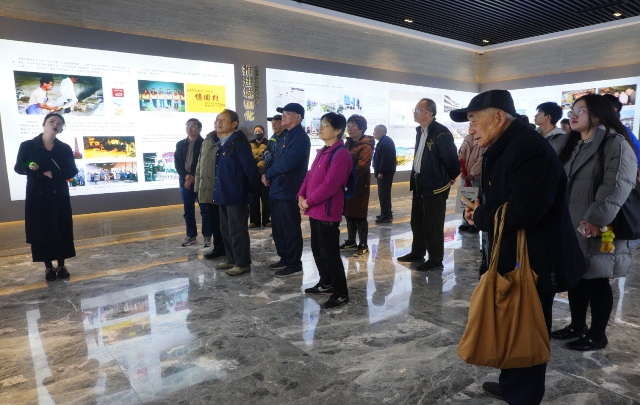 来到有着“华夏第一钢村”美誉的永联村。老同志们参观了永联展示馆、永联运行中心、永联数字生活馆。通过工作人员一路的详细讲解、馆内陈列的图文并茂展板、观看现场实操演示的“智慧永联”平台、“一站式服务”的实体等,大家感受到了“敢破敢立、自强不息、团结奉献、实干争先”的永联精神,感受到了城乡生活在现代数字赋能下的同步与同频,感受到了“发展是硬道理”的真理。