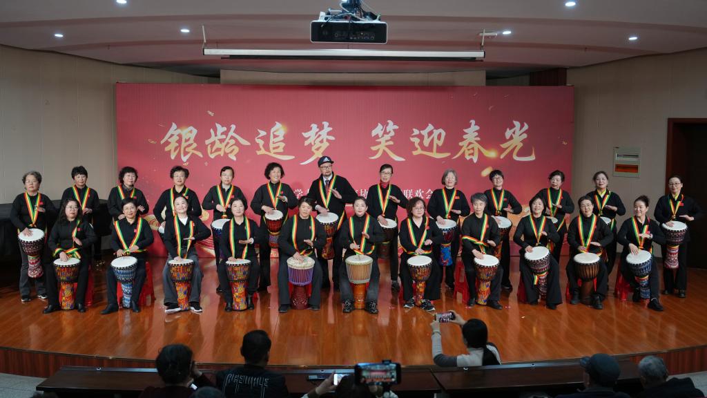 表扬仪式后,文艺演出在老教师和悦之声合唱团演绎的《国家》声中拉开帷幕。整场演出节目形式丰富、精彩纷呈:情景朗诵《不忘那个年代》与配乐诗朗诵《致2026:薪火相传再续华章》带领观众重温岁月,寄托对未来的期许;《太极刀》《武当九式太极拳》刚柔相济,尽展中华武术的深厚底蕴;舞蹈《谷雨四月间》《雨后春行》、旗袍走秀《爱的画卷》及扇子舞《盛世秧歌》翩然优雅,展现了老教师们从容美好的精神风貌。此外,京剧选段、二胡齐奏、非洲鼓表演、手语舞、健身操等节目接连上演,生动呈现了我校老教师多才多艺、乐观向上的生活姿态。演出现场气氛热烈,掌声与欢笑此起彼伏,将活动一次次推向高潮。