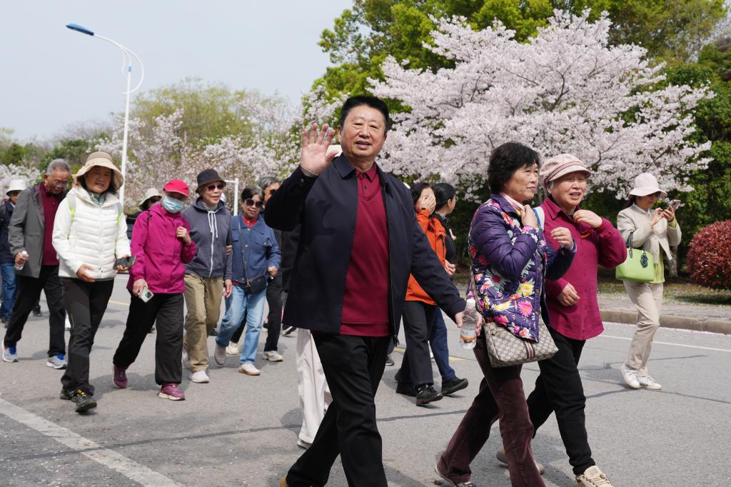 阳春三月,惠风和畅,江南校园樱花烂漫、春意正浓。为进一步丰富退休教职工精神文化生活,助力老同志强身健体、愉悦身心,3月31日上午,由学校离退休党委、离退休工作处与校老年人文体协会联合主办,乐龄徒步俱乐部承办的“漫步江南校园,共赏春日樱花”徒步活动顺利举行。220多名退休教职工重返校园,共赴这场春日浪漫之旅。