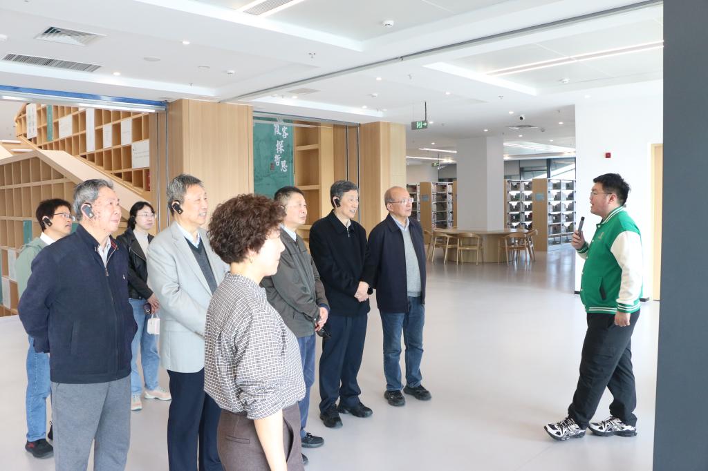 老领导们首先参观了校区图书馆。在图书馆负责人的引导下,大家详细了解了图书馆的功能布局、馆藏资源、智慧服务系统及学习空间建设情况。现代化的设施、智能化的管理、人性化的阅读环境给老领导们留下深刻印象。