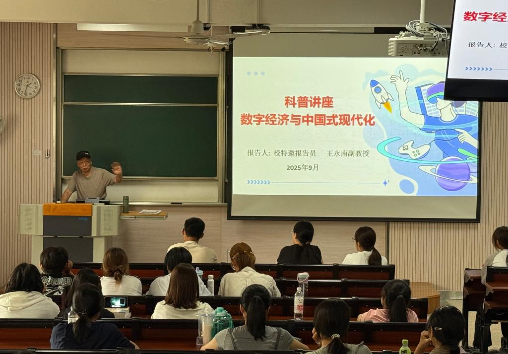 9月24日,江南大学老科协管理分会会员、特邀报告员王永南副教授在学校2教2C202多媒体教室,为法学院社工2501、2502班全体新生作“数字经济与中国式现代化”科普主题报告。班级辅导员、班主任等共有60多人参加了报告会。